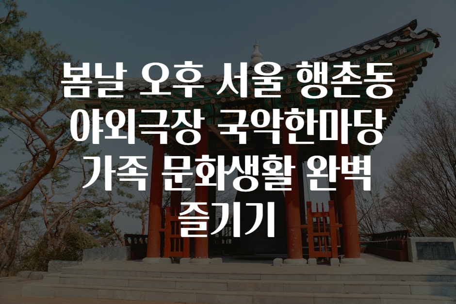 안녕하세요, 여러분! 혹시 봄바람 솔솔 부는 따뜻한 오후, 가족과 함께 특별한 문화생활을 즐기고 싶을 때 어디로 가야 할지 고민해 본 적 있으신가요? 🤔 오늘은 서울 행촌동에 위치한 야외극장에서 펼쳐지는 국악한마당 현장을 소개하며, 가족 모두가 만족할 만한 문화생활을 꼼꼼히 안내해 드리려고 합니다. 전통과 현대가 만나고, 아이들부터 어른까지 모두가 함께 호흡할 수 있는 장소랍니다! 🌳🎵