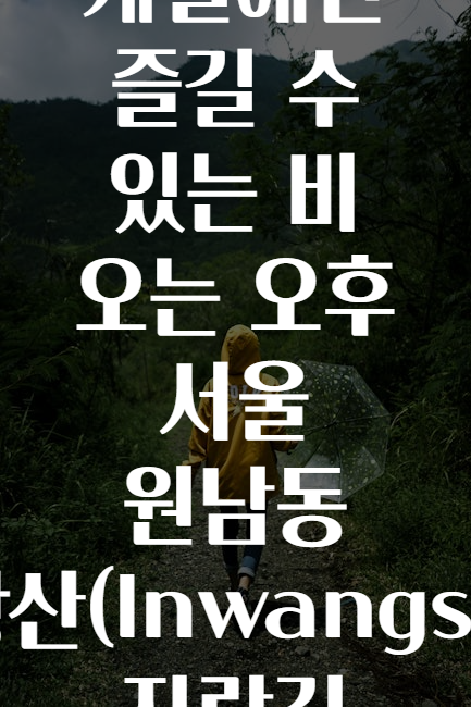 안녕하세요, 오늘은 서울 도심 속에서 비 오는 오후에 특별한 감성을 느낄 수 있는🌧️ 인왕산 자락길 산책 코스를 소개해드리려고 해요. 특히 원남동 일대는 대중적이면서도 자연과 함께 숨 쉴 수 있는 곳으로, 이번 계절처럼 비가 내리는 날에는 더욱 그 매력이 빛난답니다!🌸🍃