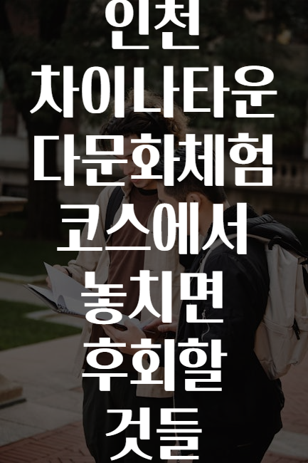 안녕하세요, 여러분! 🤗 혹시 인천 차이나타운을 방문했거나 앞으로 방문 계획 있으신가요? 그런데 그 특별한 ‘다문화체험 코스’에서 그냥 지나치면 아쉬운 것들이 있다는 사실, 알고 계셨나요? 🌏✨ 오늘은 차이나타운에서 절대 놓치면 후회하는 것들, 그리고 그 꿀팁들을 싹 다 알려드릴게요! 🚶♀️🚶♂️ 준비됐나요? 자, 출발! 🧨🍜