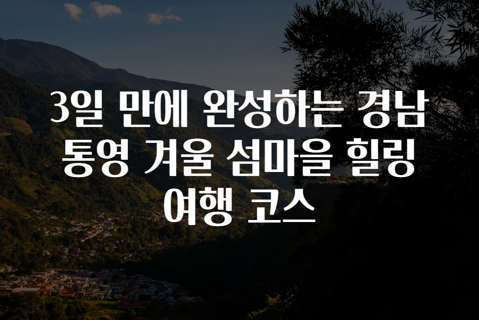 카테고리 없음 3일 만에 완성하는 경남 통영 겨울 섬마을 힐링 여행 코스 kaka3 2025. 4. 19. 반응형 🧳 여행 (국내/해외) 이전 글 보기!! 반응형 공유하기 게시글 관리 kaka3 저작자표시 비영리 변경금지 (새창열림) 댓글